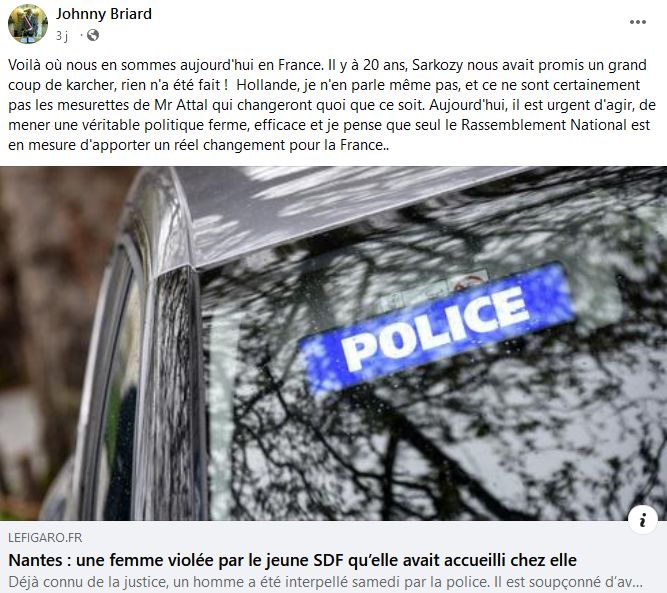 MISE A JOUR DU 29.04.2024 : Zieg Heil*** ! Bienvenue au club. Ou de l'art de virer sa cuti en même temps que péter les plombs. Ce déraillement du petit vélo qui lui tourne dans la tête va faire des vagues au château. Déjà le camarade Fraquet, adjoint aux finances calamiteuses, cornaqué par notre chère Marquise Du Chignon des Orangers de la Cour de la Mairie, lâche "je ne partage absolument pas". Le Johnny va se prendre une soufflante par la Dominique, et pour y être passé, c'est impressionnant, les yeux bleu acier de la bouiffe te transpercent de part en part comme la bastos de 11.43 de Kendji : mais comment vous savez tout ça ? Réponse : mes petites souris, c'est un très bon réseau. Déjà à l'époque, ça s'est pas arrangé depuis, on a été obligé d'embaucher des taupes en renfort, c'est dire. Ce passage du Rubicon signifie aussi qu'il a bien compris que Onc'Don'Sous est cuit et qu'il va se faire virer aux prochaines municipales et lui avec s'il reste dans cette galère. Le Xavier Charles, dont les dents rayent le parquet, a senti le vent du boulet, et minimise, car il se murmure dans les dîners en ville qu'il se verrait bien calife à la place du calife. Quant à la Christelle Bacq, elle tombe des nues même mal attifée. Très impliquée dans Lisieux Bouge, qui vient de se faire arroser de 53000€, le passage au RN d'un adjoint fait désordre vu la nature des spectacles, entre autres acrobaties. Question : après avoir claqué 6M€ (plan vélo et percée de Sedan) dans des débilités inutiles, le vélocipédiste en plein dérapage au sens figuré va t'il se faire virer ? Comique : il trouve donc qu'Onc'Don'Sous est incapable d'assurer la sécurité des Lexoviens, on l'a bien vu lors des émeutes de juin 2023, aucune arrestation, et il sent confusément que son magasin "en bois" à 100m de la cité Adeline, pas encore classée QPV, peut terminer comme la pharmacie de Montargis, en plus maman est morte de trouille et fait des cauchemars en se voyant cramer dans un bûcher purificateur, façon Jeanne d'Arc, qui, comme chacun sait, s'est éteinte après sa mort. Du coup son histoire d'incitation à la haine par votre gribouilleux préféré ne tient plus la route, car les prochain émeutiers n'ont pas besoin d'une "invitation" pour piller le centre ville, son procès dont il fait grand cas va se terminer en eau de boudin et dénonciation calomnieuse. Merci Johnny, c'est mieux d'être pote avec Reconquête ! non ? ***Plaisanteries fines évidemment.